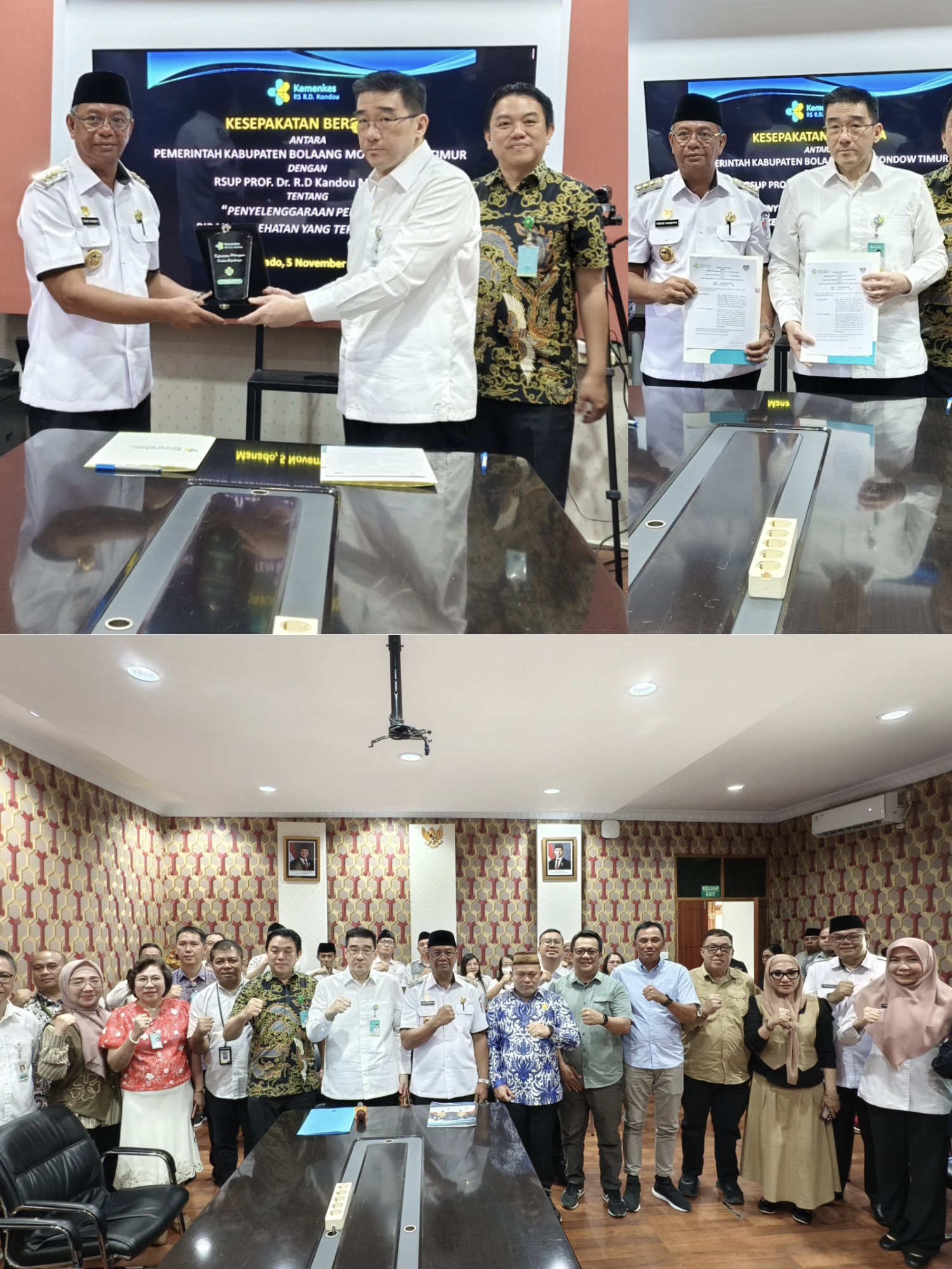 MONITORSULUT—— Upaya meningkatkan kualitas pelayanan kesehatan di daerah terus digencarkan. Rumah Sakit Umum Pusat (RSUP) Prof. Dr. R. D. Kandou Manado bersama Pemerintah Kabupaten Bolaang Mongondow Timur (Boltim) menandatangani Memorandum of Understanding (MoU) tentang penyelenggaraan pelatihan terakreditasi di bidang kesehatan, Rabu (5/11).