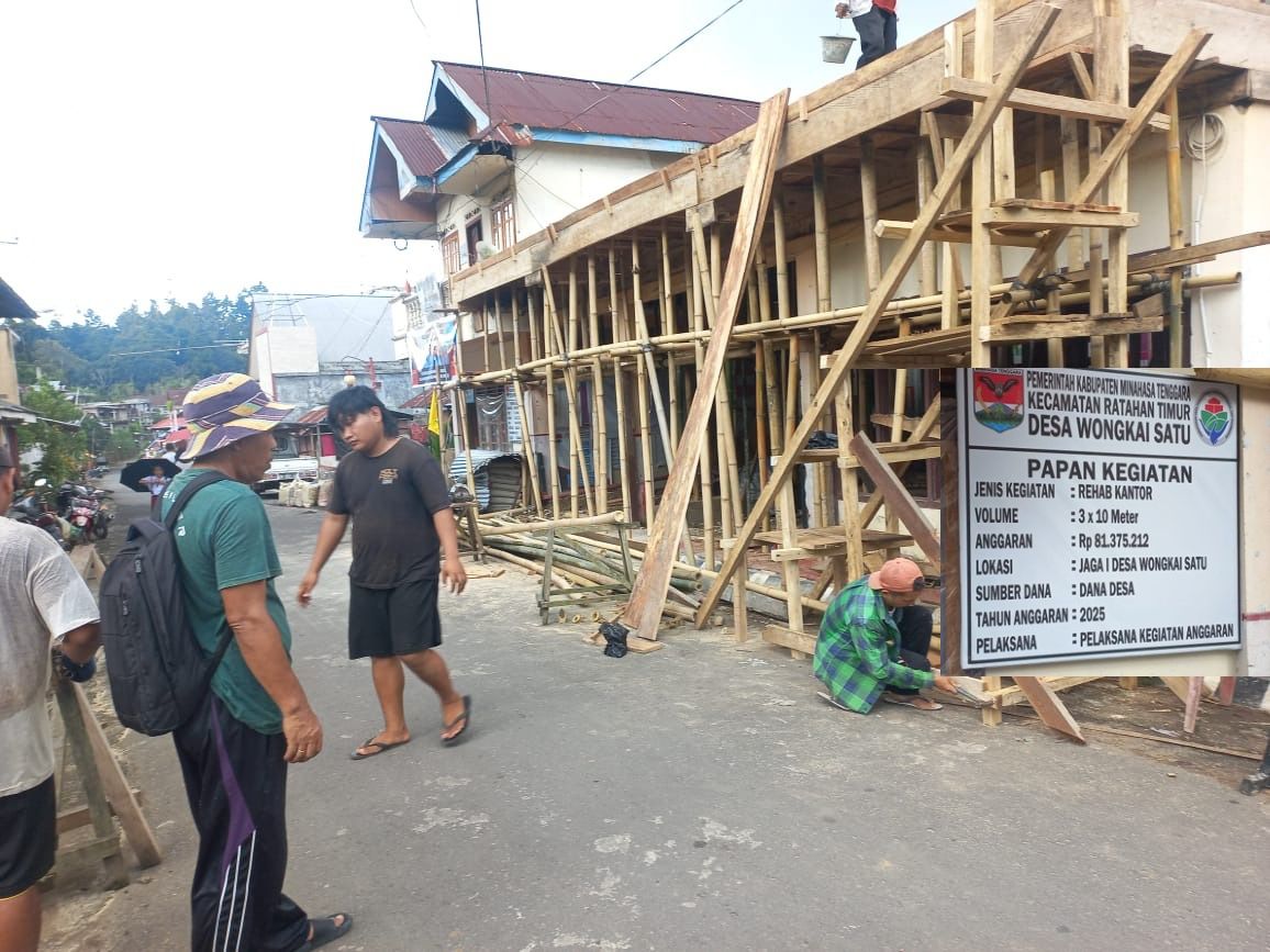 Mitra, MONITORSULUT.COM — Pemerintah Desa Wongkai Satu, Kecamatan Ratahan Timur Kabupaten Minahasa Tenggara (Mitra), yang dipimpin Hukum Tua Jeans Eiler Antou, melaksanakan rehabilitasi kantor pemerintahan desa sebagai upaya meningkatkan kualitas pelayanan kepada masyarakat. Proyek ini menggunakan dana desa dengan anggaran sebesar Rp 81.375.212,- dan dikerjakan dengan volume 3 x 10 meter.