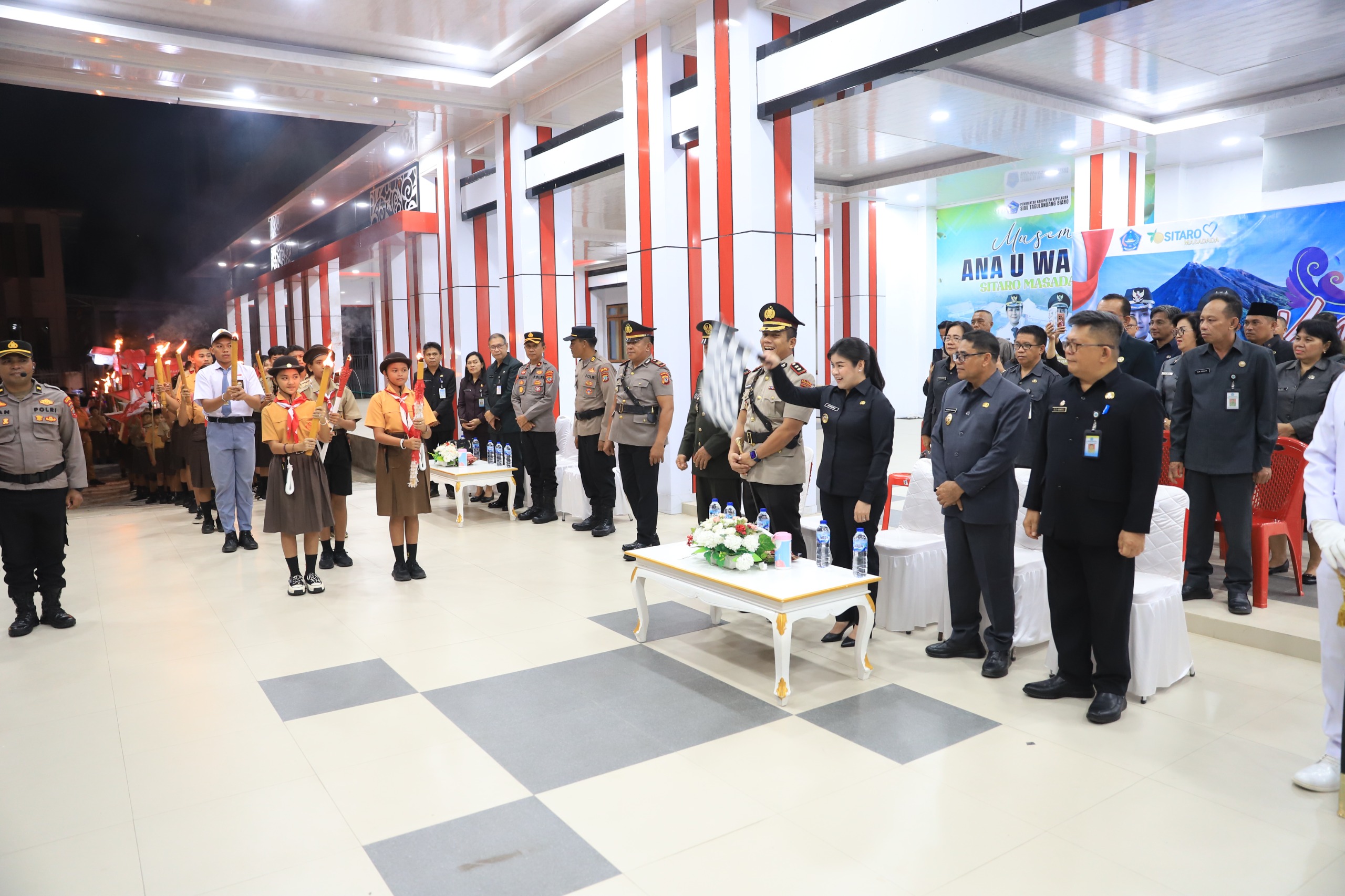 Bupati dan Wakil Bupati Sitaro Hadiri Upacara Taptu dan Pawai Obor HUT ke-80 RI