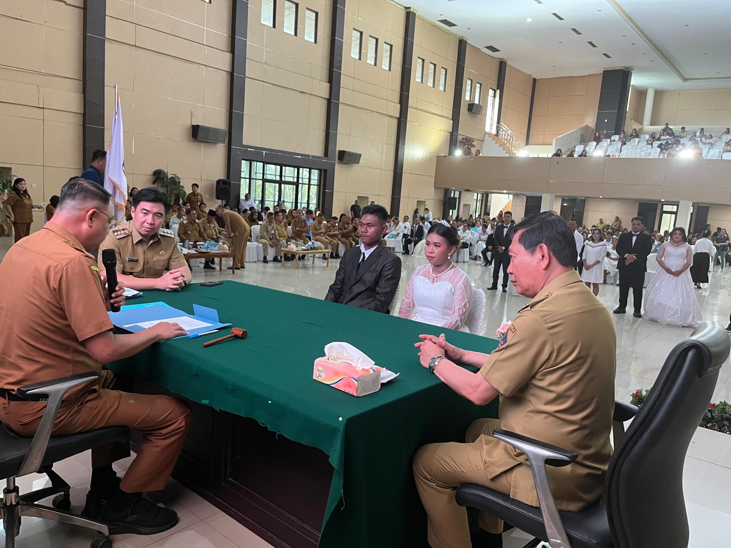 Acara diawali dengan ibadah pemberkatan nikah, kemudian dilanjutkan dengan pencatatan sipil yang disaksikan langsung oleh Wakil Gubernur Sulawesi Utara bersama para Bupati dan Wali Kota se-Sulawesi Utara.