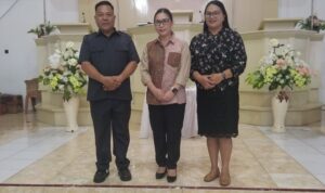 MONITORSULUT, Langowan, Wakil Bupati Minahasa Vanda Sarundayang menghadiri perayaan Festival Nasi Jaha yang digelar di halaman Gereja GMIM Zaitun Noongan Senin (01/11). Festival yang dibalut kegiatan ‘Berbage Berkat’ Nasi Jaha, bagi masyarakat dan penguna jalan Langowan-Mitra.