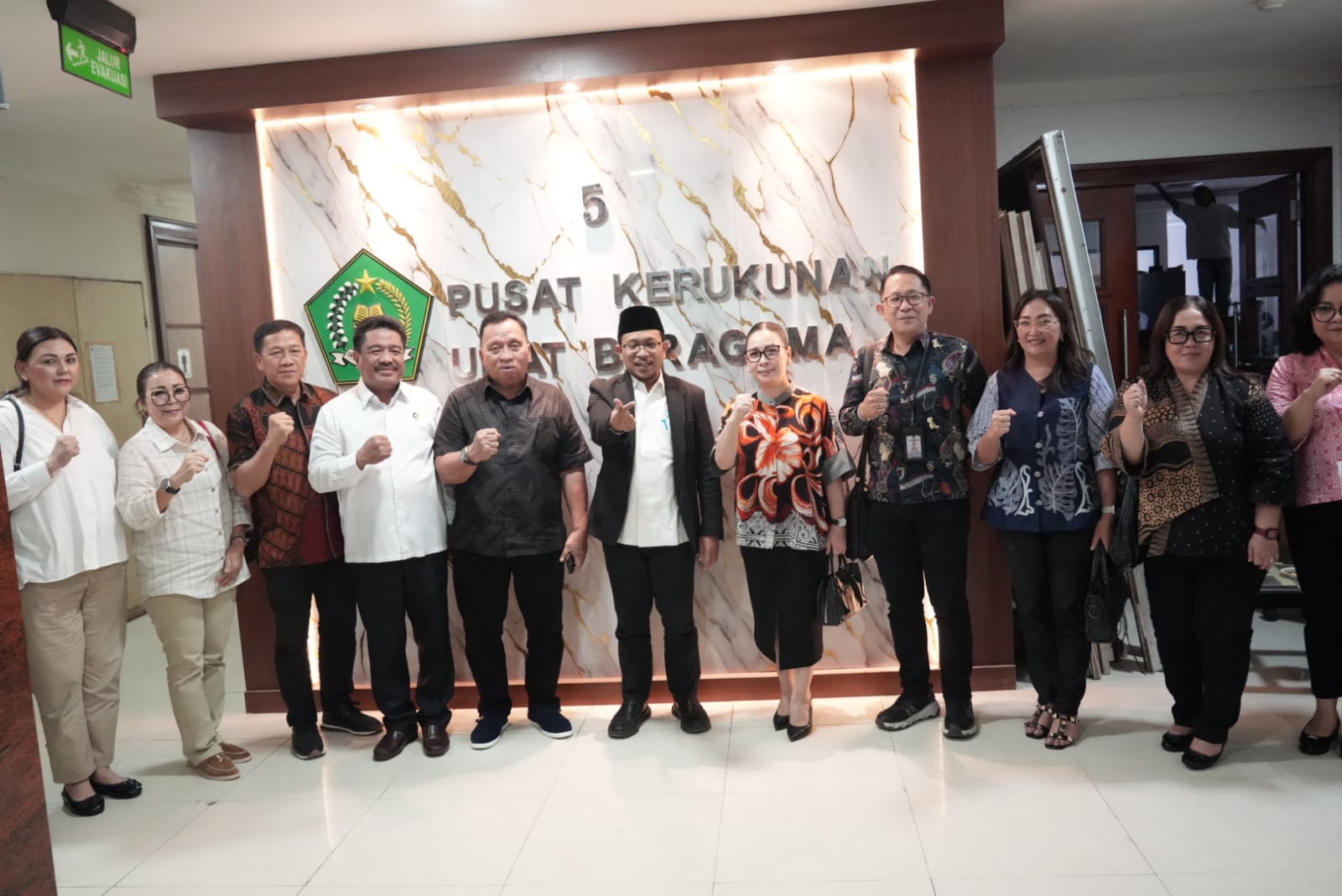 Rombongan Bupati Minahasa disambut langsung oleh Kepala Pusat Kerukunan Umat Beragama (PKUB) Kemenag RI, Bapak M. Adib Abdul Shomad, M.Ag., M.Ed., Ph.D, bersama jajaran. Dalam pertemuan tersebut, turut dibahas berbagai program strategis lainnya untuk kemajuan Minahasa.