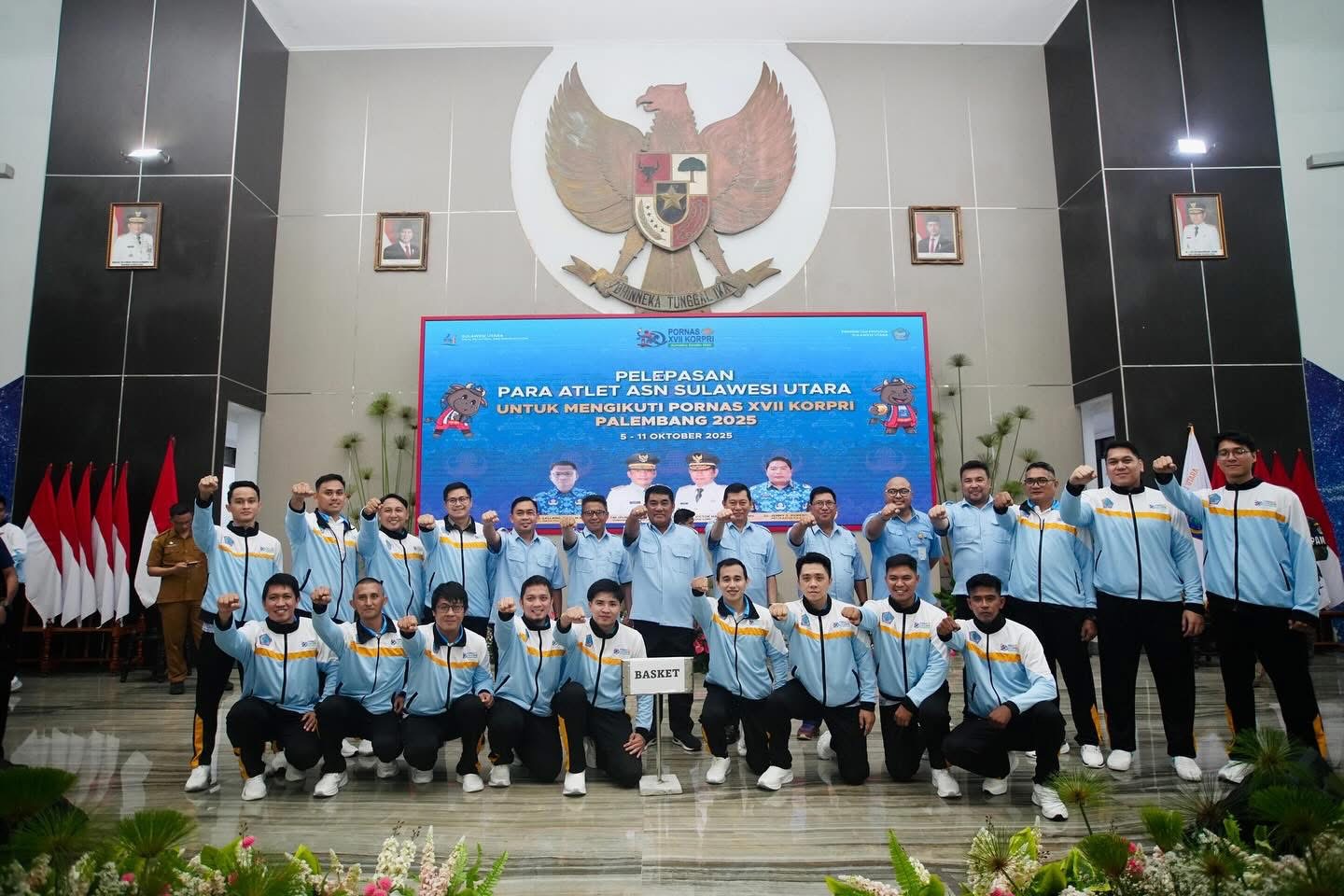 MONITORSULUT,MANADO —-Gubernur Sulawesi Utara, Mayjen TNI (Purn) Yulius Selvanus, secara resmi melepas kontingen Sulut yang akan berlaga pada Pekan Olahraga Nasional (Pornas) Korpri XVII di Palembang. Upacara pelepasan berlangsung di Aula Mapalus Kantor Gubernur Sulut, didampingi Wakil Gubernur Victor Mailangkay, Jumat (03/10).