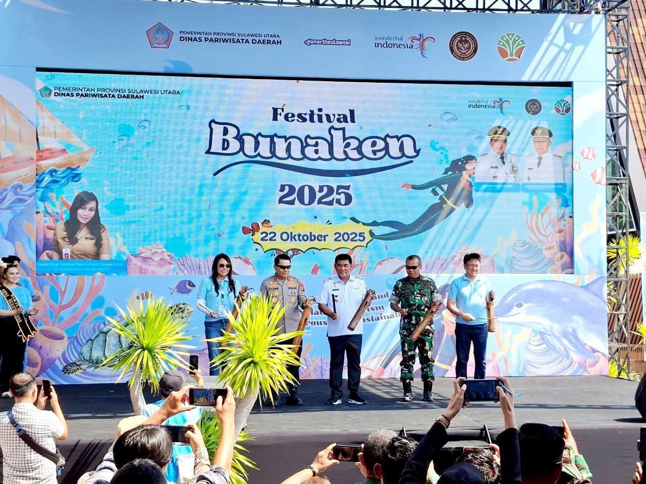 MONITORSULUT——Gubernur Sulawesi Utara, Mayjen TNI (Purn.) Yulius Selvanus Komaling, S.E., secara resmi membuka kegiatan Festival Bunaken Tahun 2025 yang berlangsung di kawasan wisata bahari Bunaken, Kota Manado, Rabu 22 Oktober 2025.