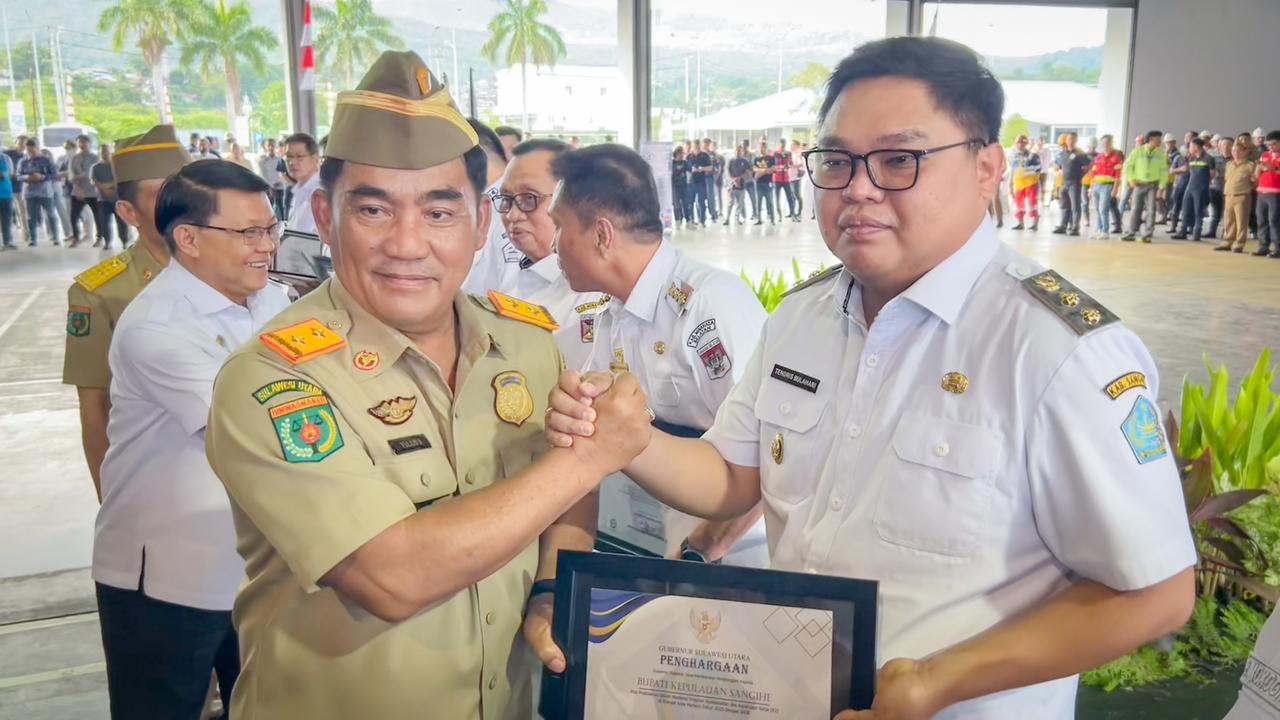Pada kesempatan itu, Wakil Bupati Kepulauan Sangihe, Tendris Bulahari menerima Penghargaan Pembina K3 bagi Bupati/Wali Kota se-Provinsi Sulawesi Utara. Penghargaan tersebut diberikan sebagai bentuk apresiasi atas komitmen Pemerintah Kabupaten Kepulauan Sangihe dalam melakukan pembinaan dan pengawasan pelaksanaan K3.
