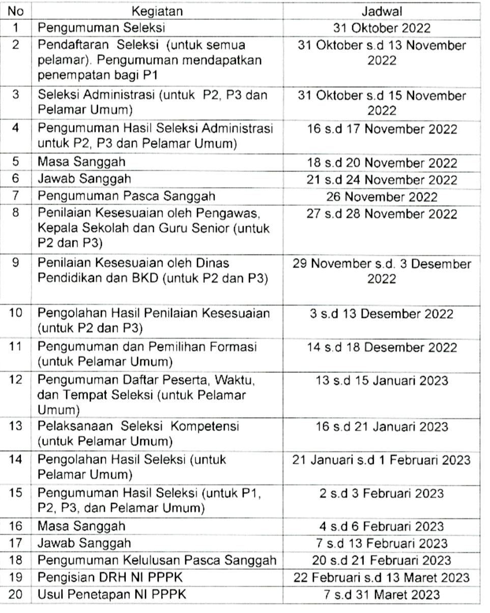 Dikatakan Pj Sekprov Hadi didampingi Kepala BKD Clay Dondokambey menyatakan pembukaan seleksi dan tahapan bisa dikuti perkembangan informasi terkait seleksi pengadaan PPPK tenaga fungsional guru melalui beberapa link dan media sosial dibawah ini yaitu https://sscasn.bkn.go.id dan https://gurupppk.kemendikbud.go.id