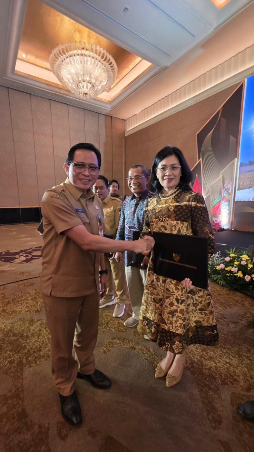 MONITORSULUT, Jakarta – Wakil Bupati Minahasa Vanda Sarundajang menerima Piala Tim Pengendalian Inflasi Daerah (TPID) Award sebagai TPID Berprestasi Tahun 2025 pada Pertemuan Tahunan Bank Indonesia 2025 yg disaksikan Presiden RI Prabowo Subianto, Menteri Perekonomian Airlangga Hartarto dan Gubernur Bank Indonesia Perry Warjiyo pada akhir bulan November lalu, hari ini Senin, 8 Desember 2025 Bupati Minahasa Robby Dondokambey, SSi, MAP yang diwakili oleh Sekretaris Daerah Kabupaten Minahasa Dr. Lynda D. Watania, MM, MSi menerima kembali Piagam Penghargaan TPID Berprestasi 2025 dari Direktur Eksekutif Bank Indonesia Firman Mochtar, yang didampingi oleh Deputi Menteri Koordinator Perekonomian Ferry Irawan dan Direktur Jenderal Bina Pembangunan Daerah Kemendagri Restuardi Daud dalam Rapat Koordinasi Pusat dan Daerah TPID Tahun 2025 di Hotel Mulia Senayan Jakarta.