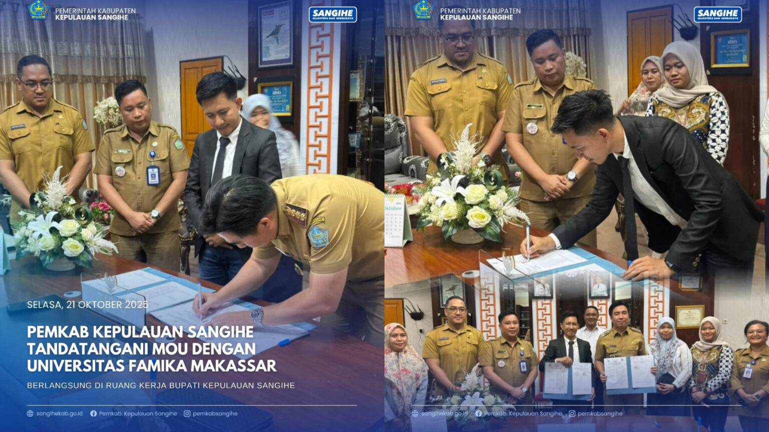 MONITORSULUT,Sangihe- Pemerintah Kabupaten Kepulauan Sangihe mengambil langkah strategis dalam peningkatan kualitas sumber daya manusia di sektor kesehatan. Melalui penandatanganan nota kesepahaman (MoU) dengan Universitas Famika Makassar, Selasa (21/10/2025), Bupati Kepulauan Sangihe Michael Thungari resmi membuka peluang pendidikan lanjutan bagi tenaga keperawatan di daerahnya.