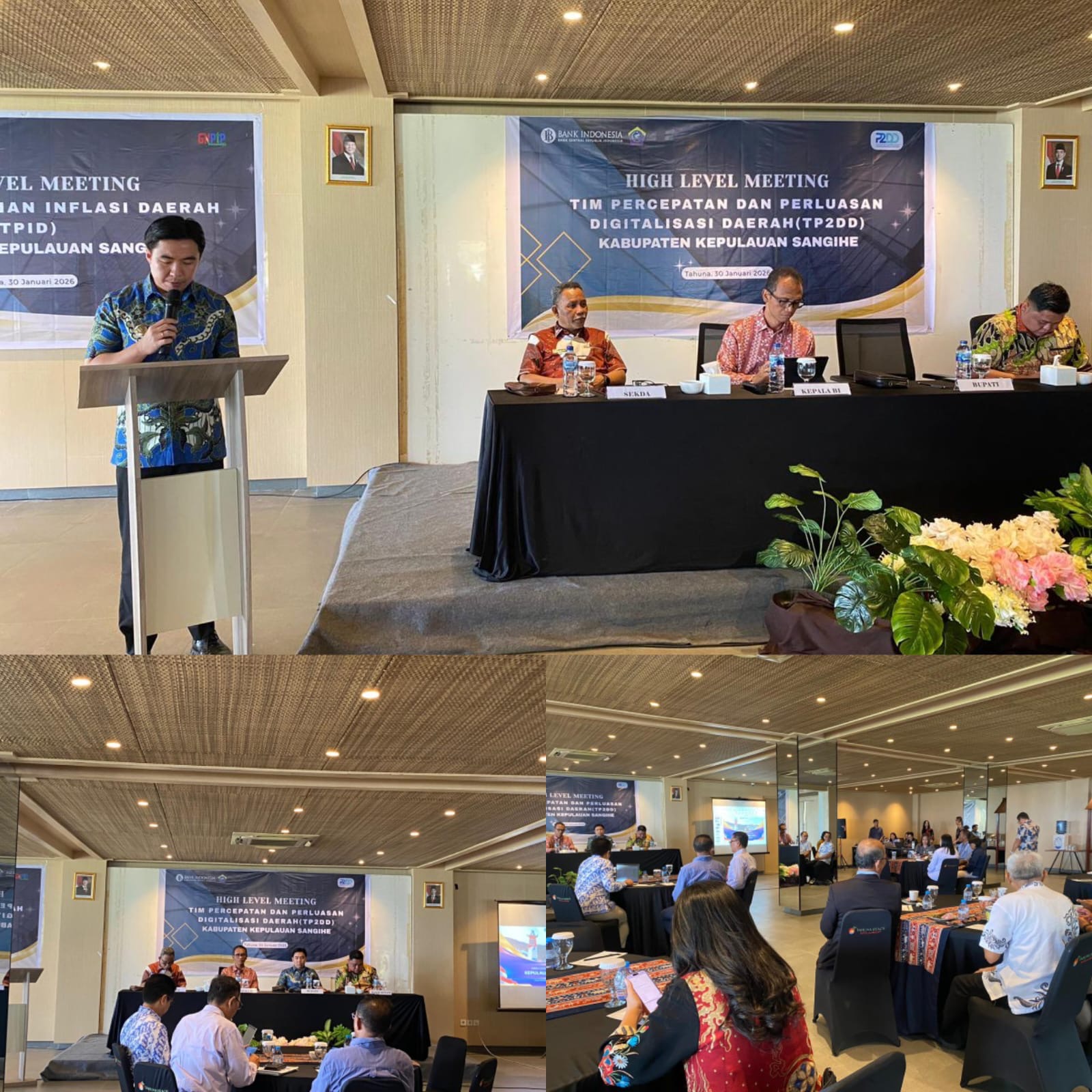 MONITORSULUT,Sangihe- Pemerintah Kabupaten Kepulauan Sangihe terus mematangkan langkah strategis dalam menjaga stabilitas ekonomi daerah. Hal ini ditandai dengan pelaksanaan High Level Meeting Tim Percepatan dan Perluasan Digitalisasi Daerah (TP2DD) yang dirangkaikan dengan Tim Pengendalian Inflasi Daerah (TPID), bertempat di Ballroom Tahuna Beach Hotel, Jumat (30/1/2026).