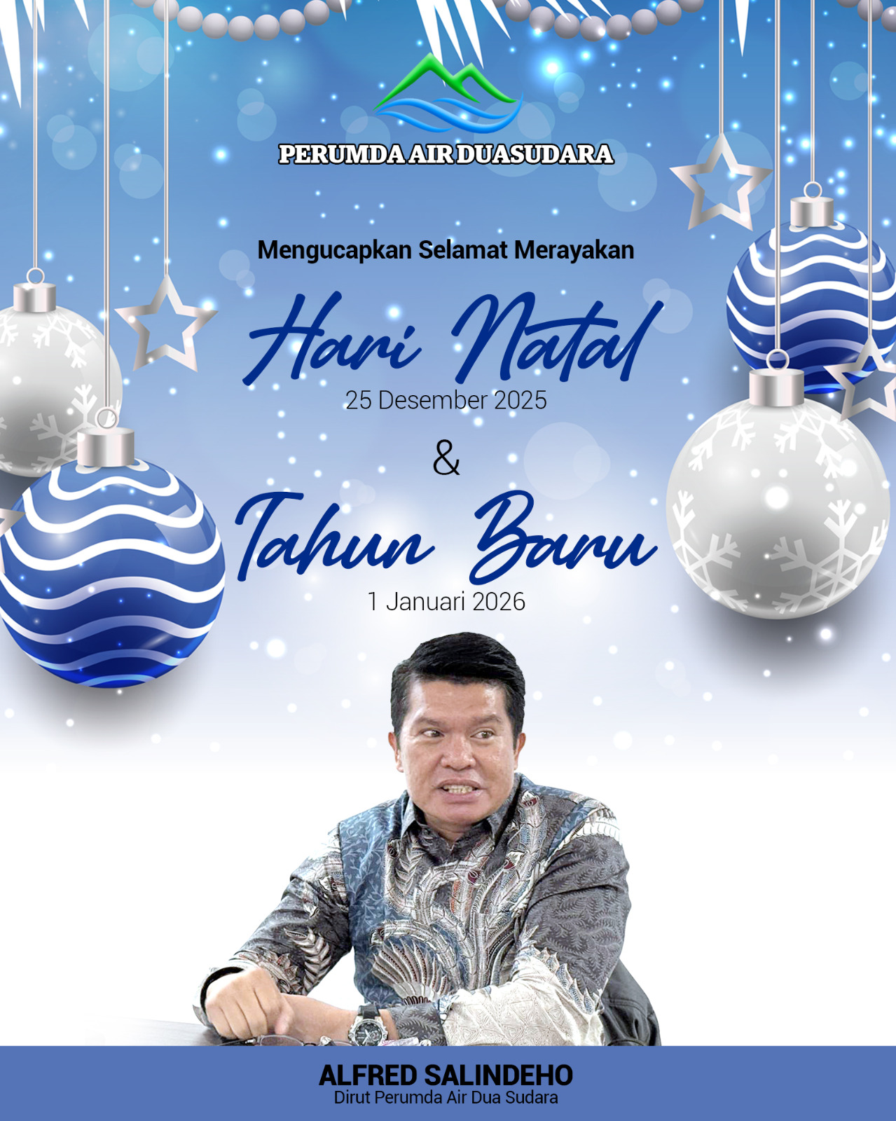 Pimpinan Perumda Air Duasudara mengucapkan Selamat Natal dan Tahun BaruYulia WalandouwDesember 24, 2025Januari 27, 2026Berita Foto, Bitung57656 Dilihat Post Views: 57,656 Jangan LewatkanWali Kota Bitung Pimpin Apel Karya Bakti TNI, Rusunawa Tangkoko Jadi Lokasi Strategis Latihan Kodim 1310Pelindo Benahi Pelabuhan Bitung Jelang Puncak Arus Natal dan Tahun BaruBitung Di Pilih Bappenas Jadi Kota Percontohan Tata Ruang Berkelanjutan NasionalDireksi Pasar Dinilai Gagal, Wali Kota Bitung Turun Langsung Redam Keluhan PedagangKPPN Bitung: Realisasi TKD Kota Bitung 2025 Capai 98,47 Persen, Dorong Penguatan UMKM DaerahAntou: Rehabilitasi Kantor Pemdes Wongkai Satu Capai 60 Persen