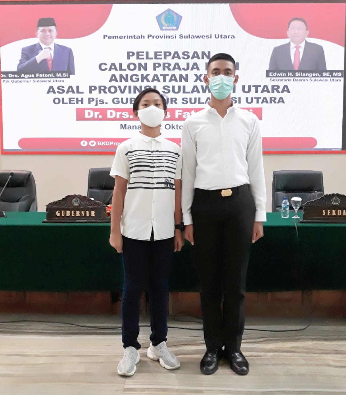 Dimana putra sulung Reycardo Leonardo Rondonuwu secara resmi dilepas Pjs Gubernur Sulut Dr Drs Agus Fatoni MSi pada kegiatan pelepasan calon Praja IPDN angkatan XXXI asal Provinsi Sulawesi Utara yang berlangsung di Ruang Mapalus Kantor Gubernur Sulut.