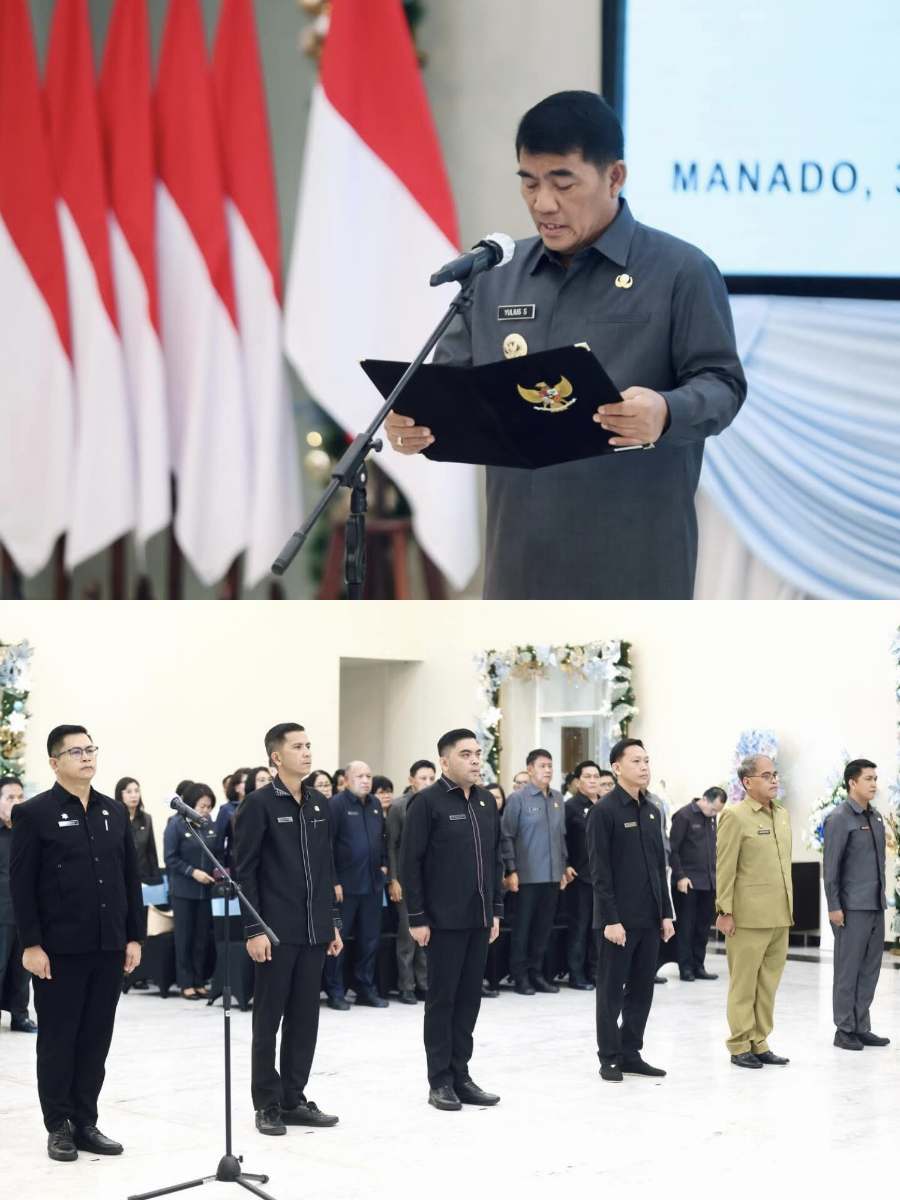 MONITORSULUT—-Gubernur Sulawesi Utara Yulius Selvanus melakukan penyegaran di tubuh birokrasi Pemerintah Provinsi Sulawesi Utara. Sejumlah pejabat administrator resmi dilantik dan diambil sumpah jabatannya dalam sebuah prosesi yang berlangsung khidmat di Wisma Negara Bumi Beringin, Selasa (30/12/2025).
