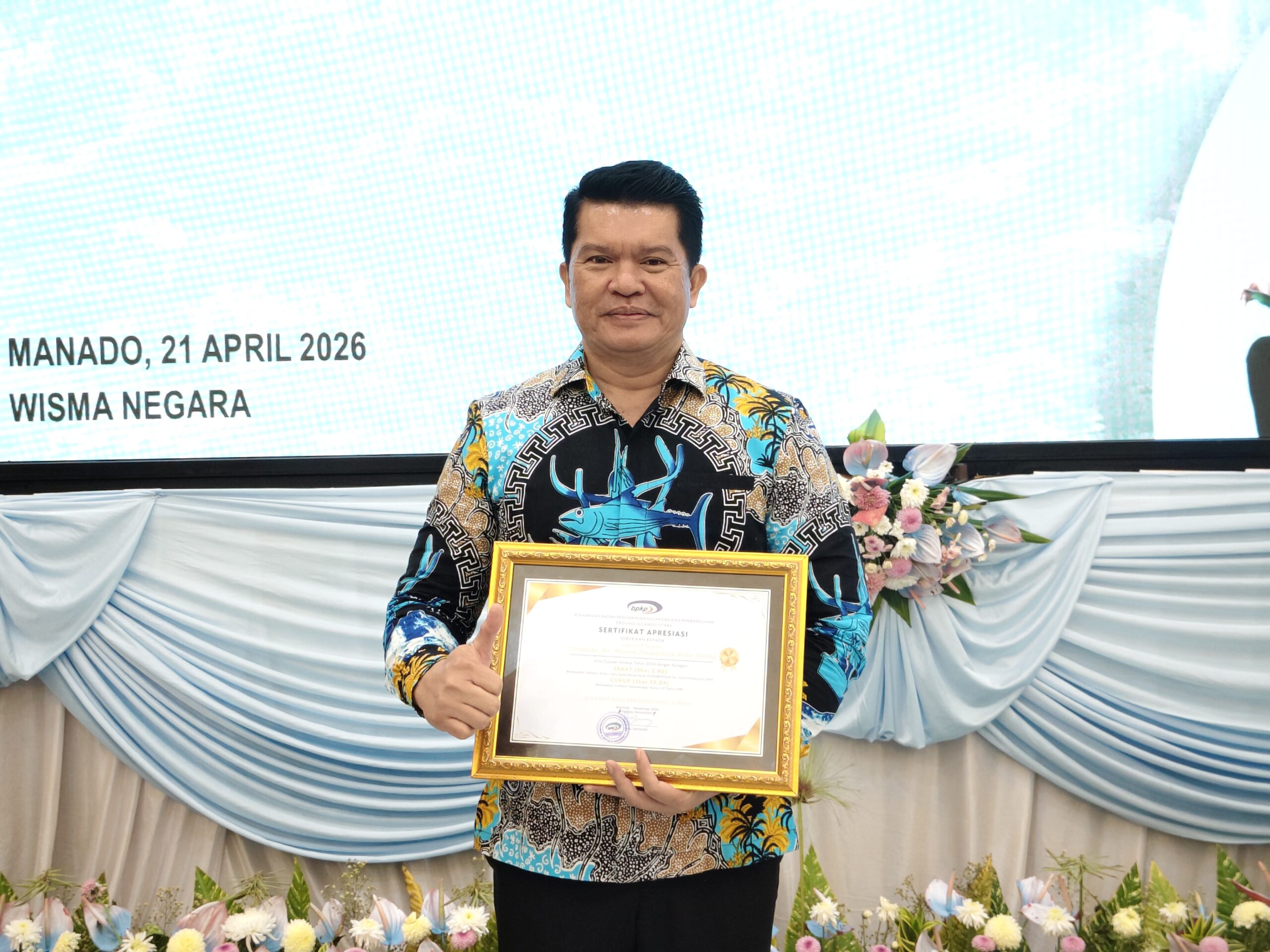 Direktur Utama PDAM Air Duasudara Bitung Alfrest Salindeho menyampaikan bahwa penghargaan dan apresiasi yang diterima menjadi motivasi untuk terus meningkatkan kinerja perusahaan.