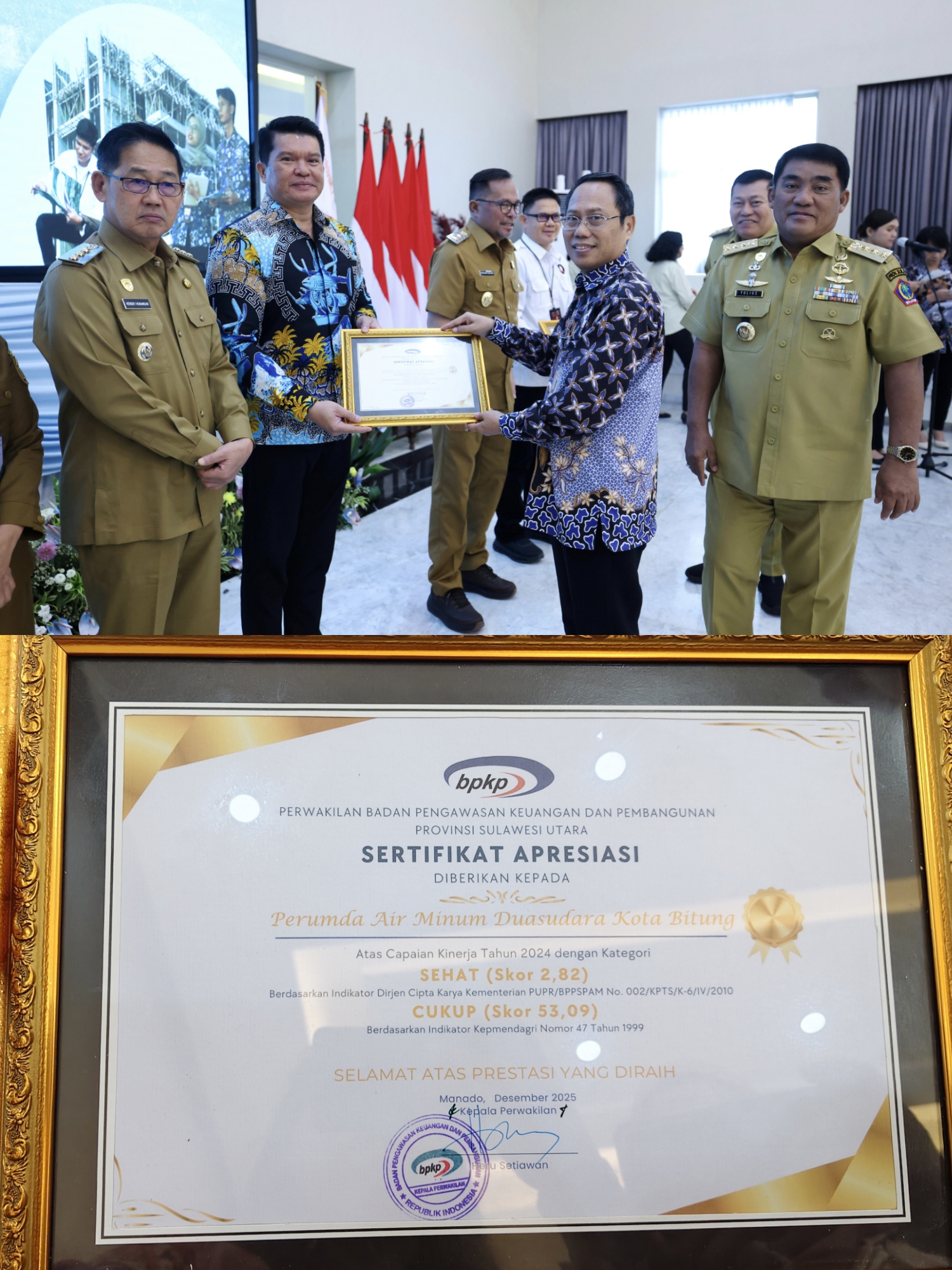Dalam penilaian kinerja tahun 2024, PDAM Air Duasudara Bitung berhasil meraih kategori “Sehat” dengan skor 2,82, serta kategori “Cukup” dengan skor 53,99 berdasarkan indikator resmi yang digunakan.