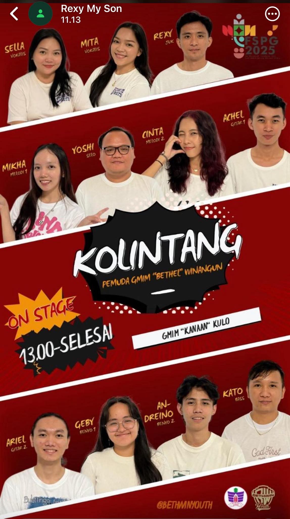 Tak berhenti sampai di situ, Pemuda GMIM Bethel Winangun juga akan melanjutkan perjuangan mereka dalam ajang lomba Band pada Sabtu (25/10) dan Choir pada Minggu (26/10), sebagai bagian dari rangkaian kegiatan FSPG 2025.
