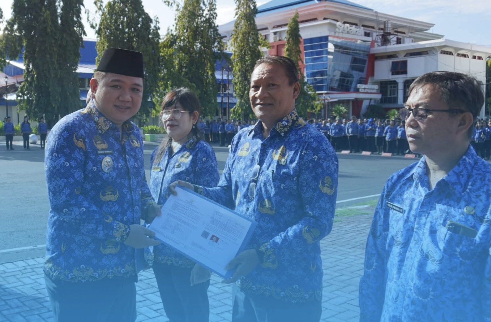 MONITORSULUT,BITUNG — Wakil Wali Kota Bitung, Randito Maringka, memimpin upacara bendera yang dirangkaikan dengan apel Korpri di lingkungan Pemerintah Kota Bitung, Senin (30/3/2026).