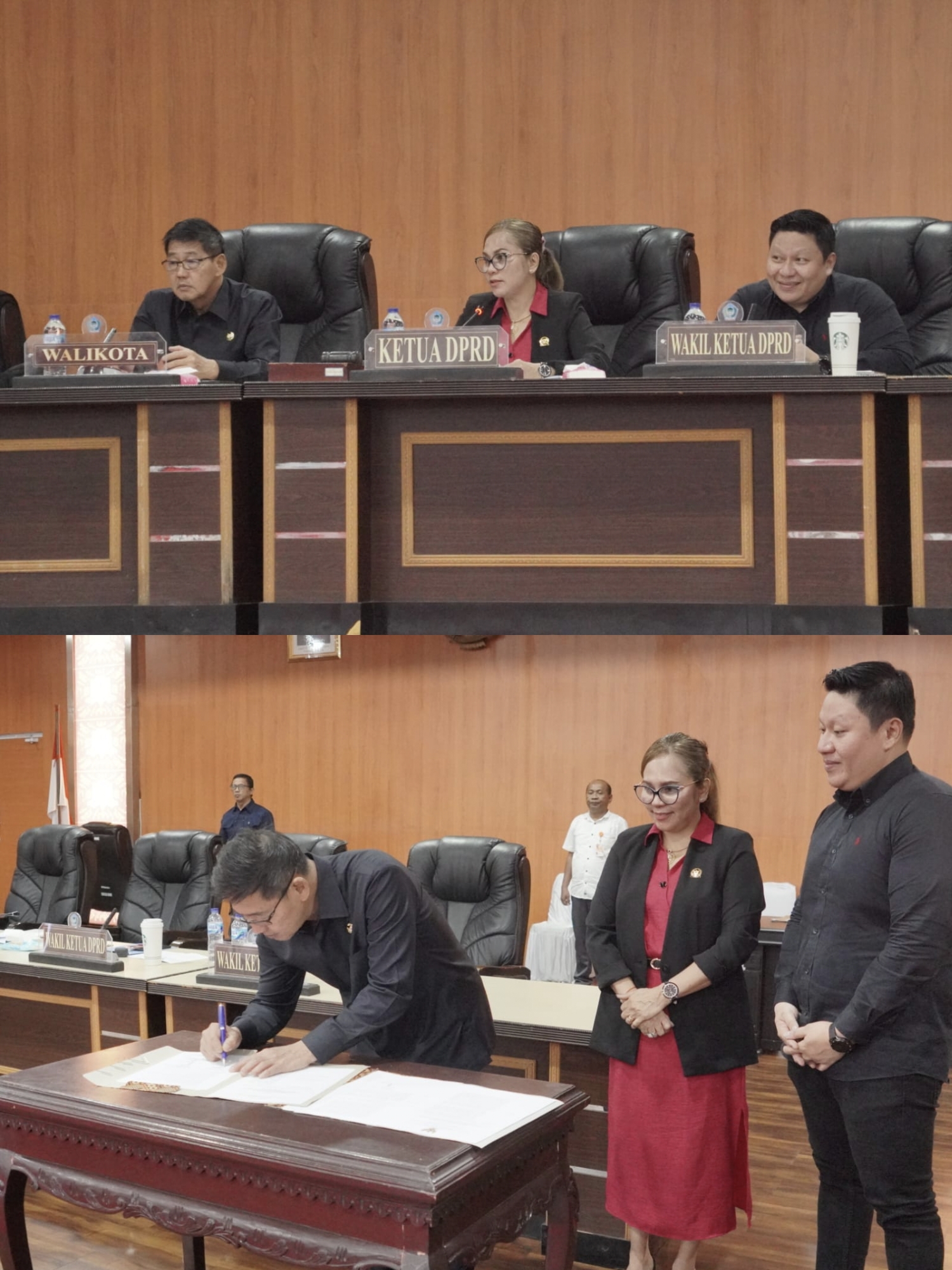 Dalam sambutannya, Wali Kota Bitung juga menyampaikan terima kasih atas pendapat akhir seluruh fraksi DPRD, yang dinilai menjadi bagian penting dalam penyempurnaan arah kebijakan pembangunan daerah.
